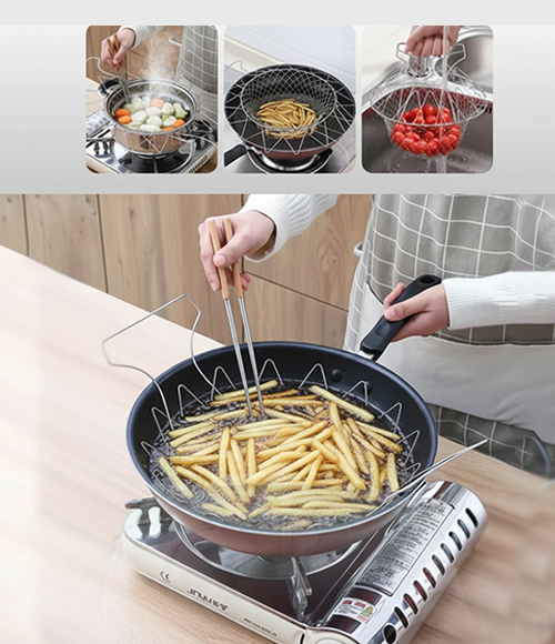 Multi-Purpose Stainless Steel Folding Cooking & Straining Basket